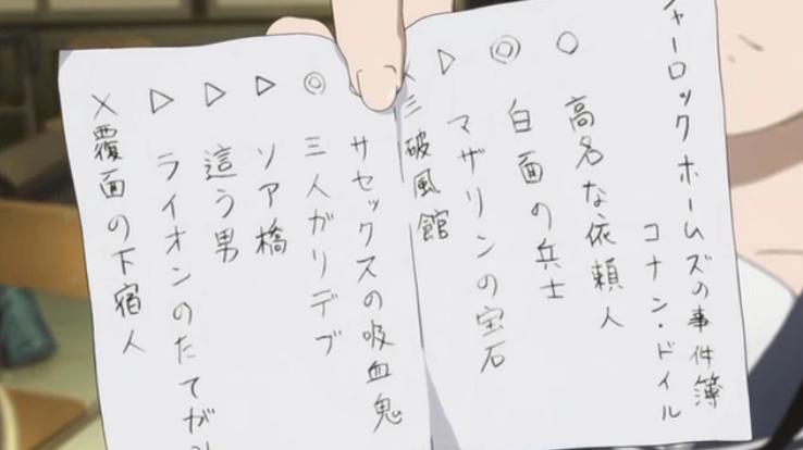 本郷が一夜漬けで勉強したというホームズ本に挟まっていたメモ。
